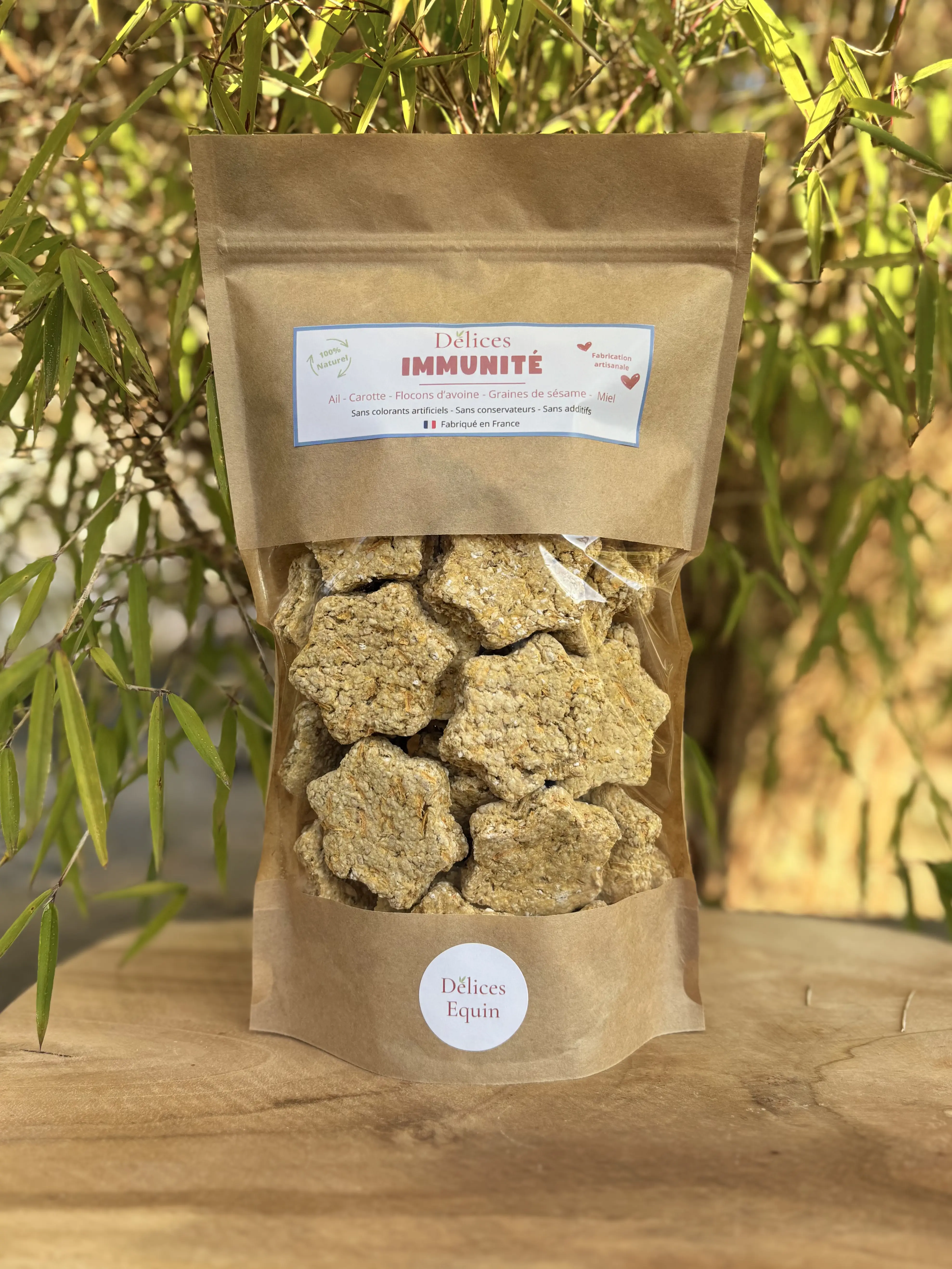 Les Délices Immunité contiennent carotte, ail, flocons d’avoine et graines de sésame pour :